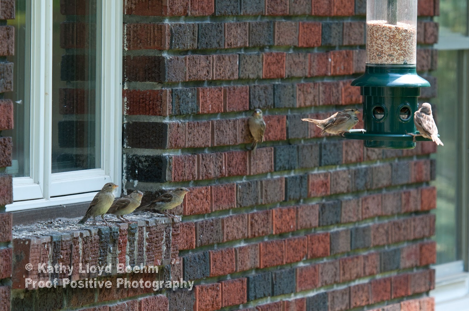 One of our bird feeders, this one outside the kitchen window. The three little guys on the window sill are in what we call "the waiting room." The Sparrows figured out that only 2-3 birds can be on the feeder at the same time. They are patient, but territorial.
